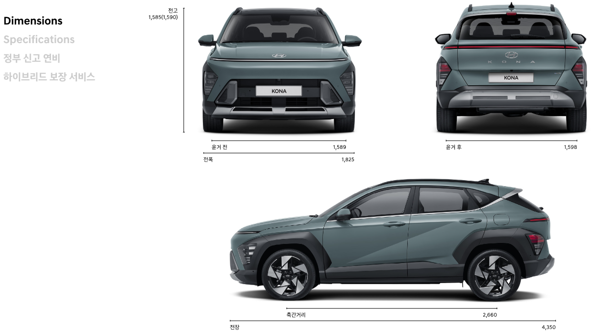 코나 2025는 도심형 SUV로서 컴팩트한 크기와 뛰어난 성능을 자랑합니다. 아래는 주요 제원을 정리한 내용입니다.
