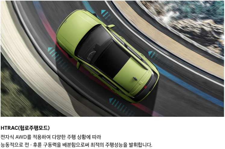 - 1.6 터보 가솔린: 198마력, 7단 DCT 변속기, 2WD/4WD 선택 가능