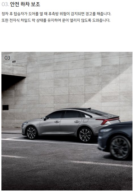 - 안전 하차 보조 (SEA): 하차 시 후방에서 접근하는 차량을 감지하여 사고를 예방하는 기능