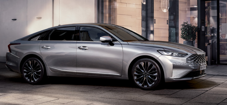 K8 하이브리드의 외관 디자인은 기아의 새로운 디자인 철학인 '오퍼짓 유나이티드(Opposites United)'를 반영하고 있습니다. K8 하이브리드의 전면부는 기아의 상징인 '타이거 노즈' 그릴을 재해석한 '타이거 페이스'를 적용하여 강인하면서도 세련된 이미지를 연출합니다. K8 하이브리드의 측면 디자인은 쿠페 스타일의 유려한 라인을 통해 역동성을 강조하며, 후면부는 LED 리어 콤비네이션 램프를 통해 미래지향적인 이미지를 완성합니다.