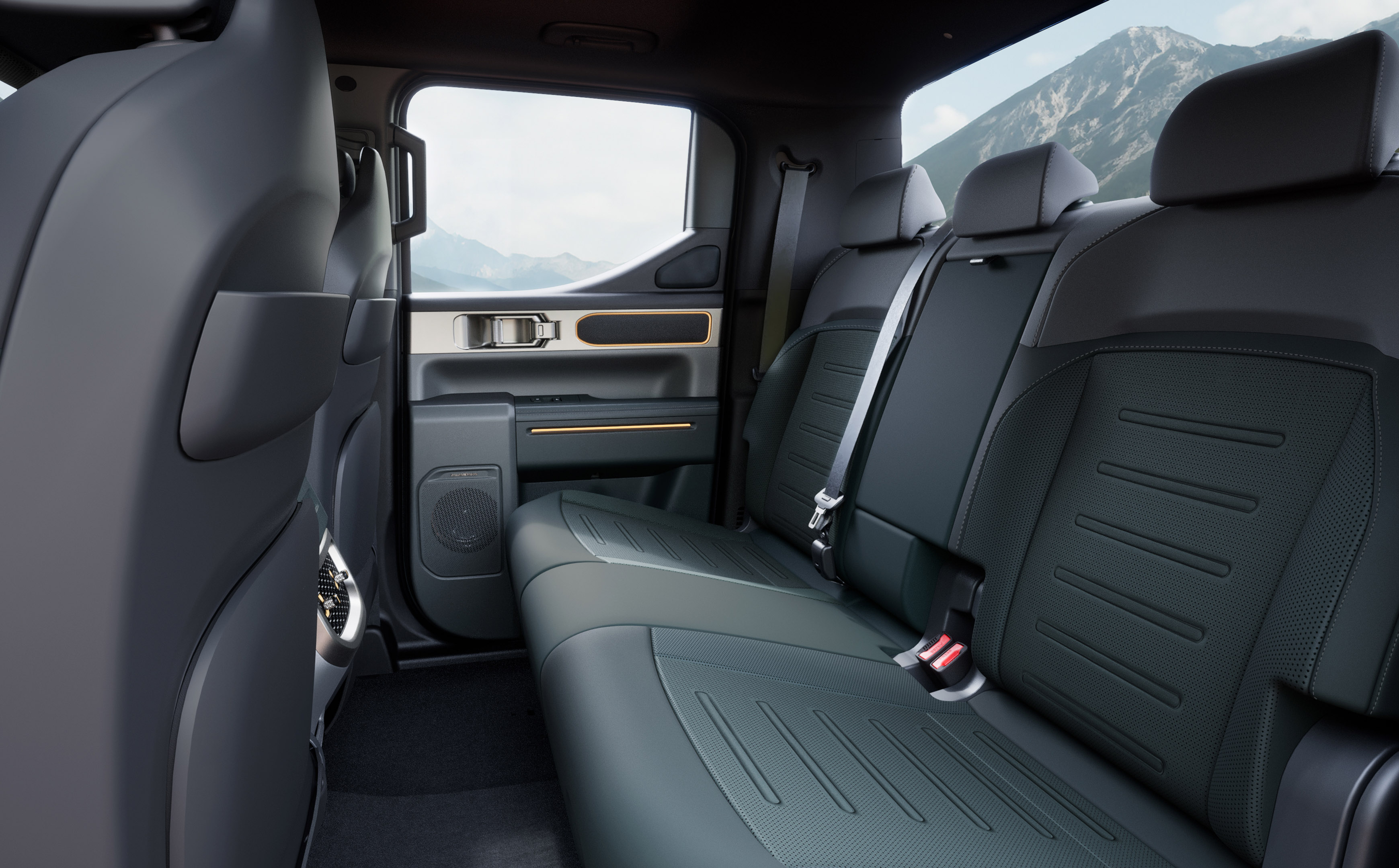 타스만은 기아의 디자인 철학 '오퍼짓 유나이티드'를 바탕으로, 강인하면서도 세련된 외관 디자인을 선보입니다. 특히 주목할 만한 디자인 요소는 다음과 같습니다: