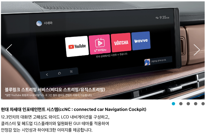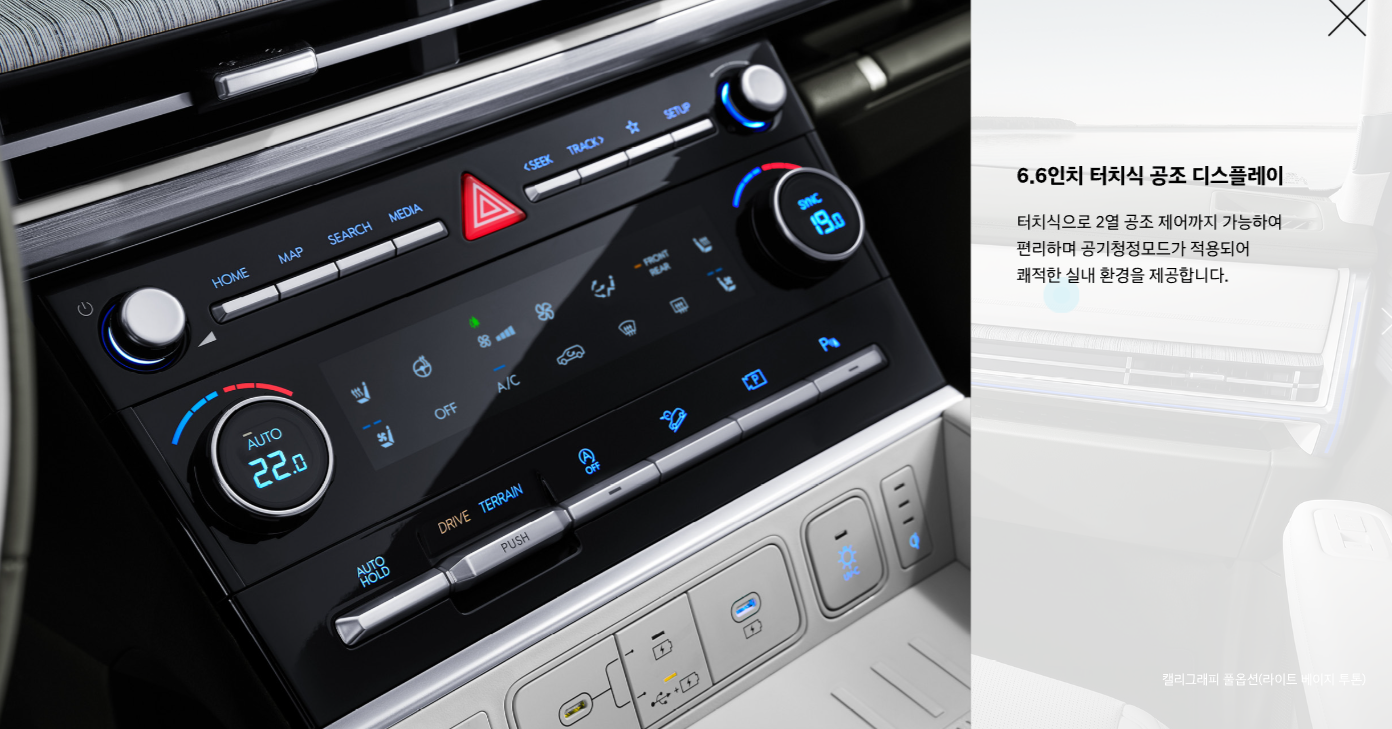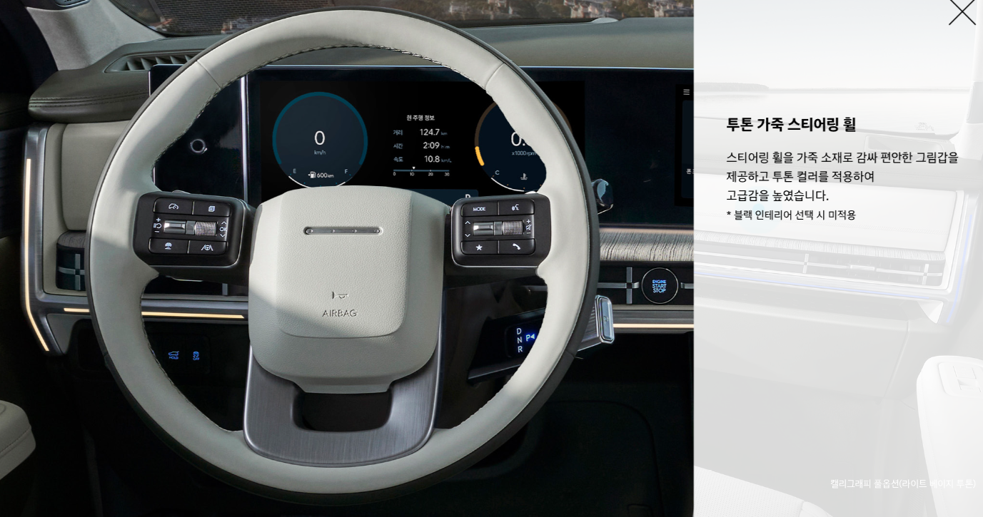 • 인테리어: 파노라마 선루프, 앰비언트 무드램프, 나파 가죽 시트, 2열 스마트폰 무선 충전 시스템