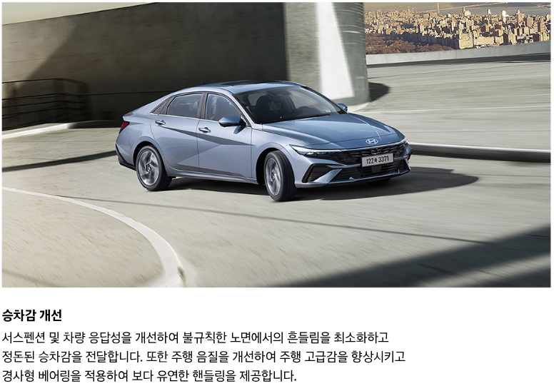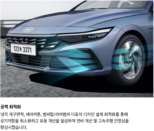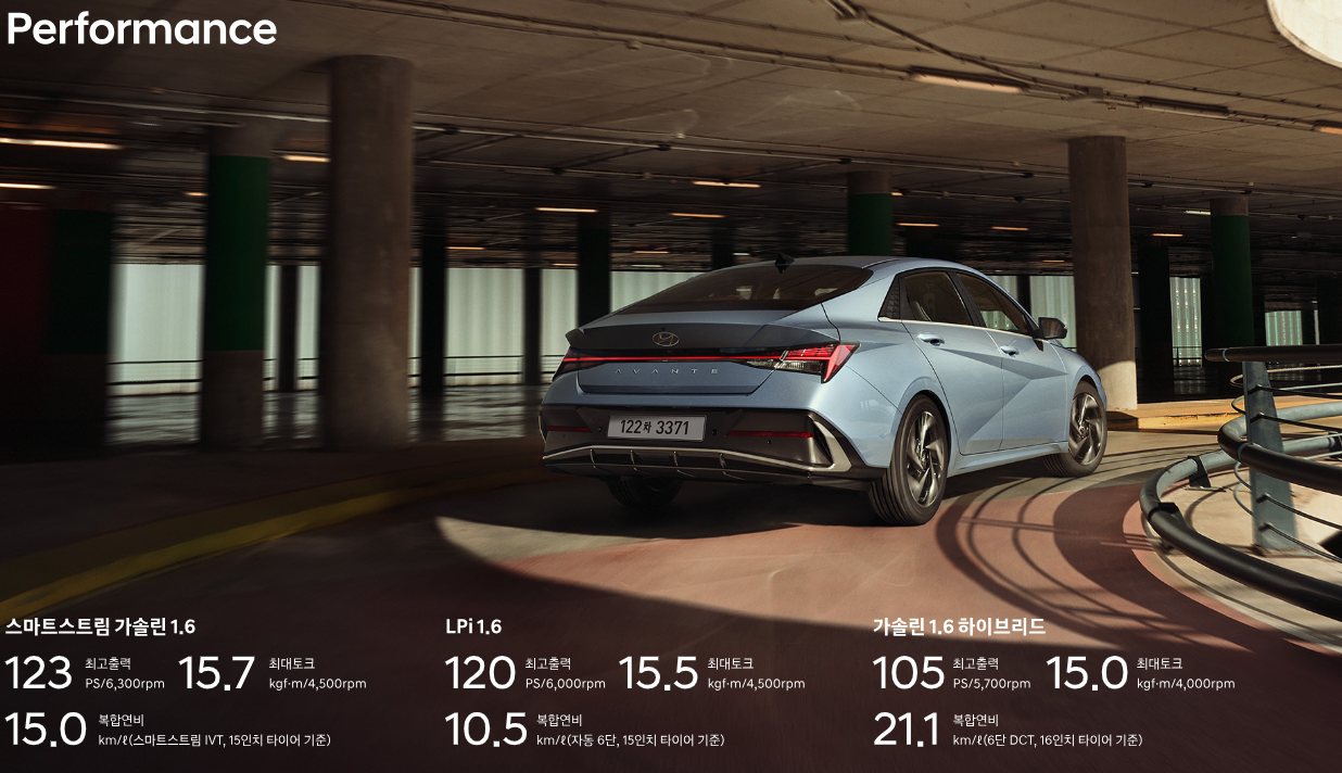 • 2025 아반떼 가솔린 1.6 엔진: 최고출력 123마력, 최대토크 15.7kg·m
