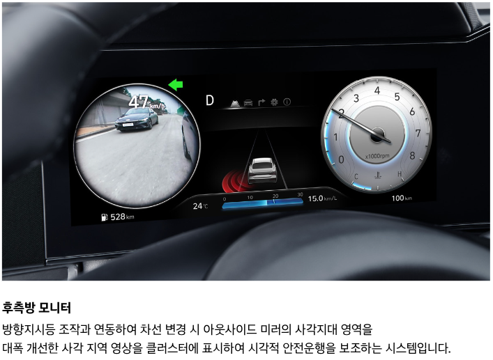 2. 현대 스마트센스: 전방 충돌방지 보조, 차로 이탈방지 보조 등 첨단 안전 기능 패키지