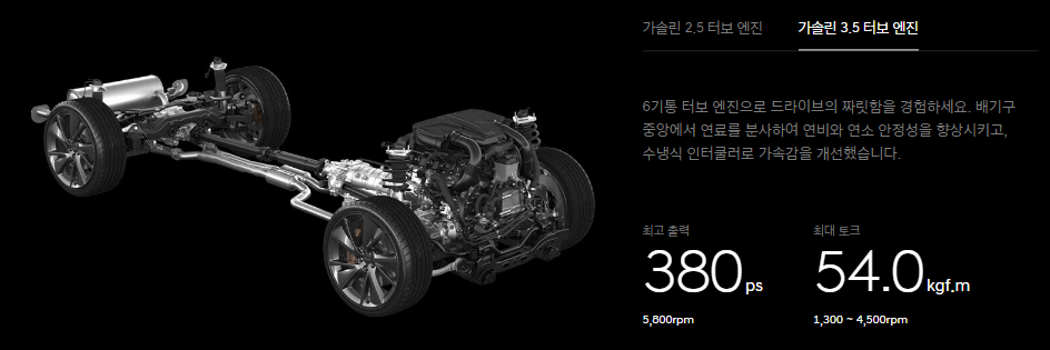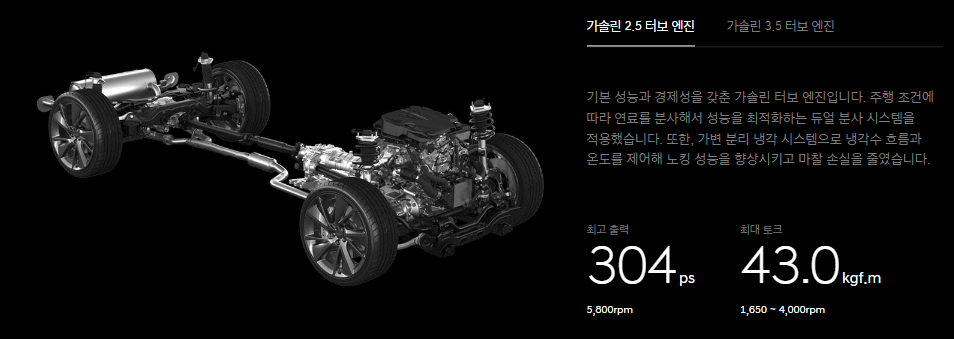 | 구분 | 가솔린 2.5 터보 | 가솔린 3.5 터보 |