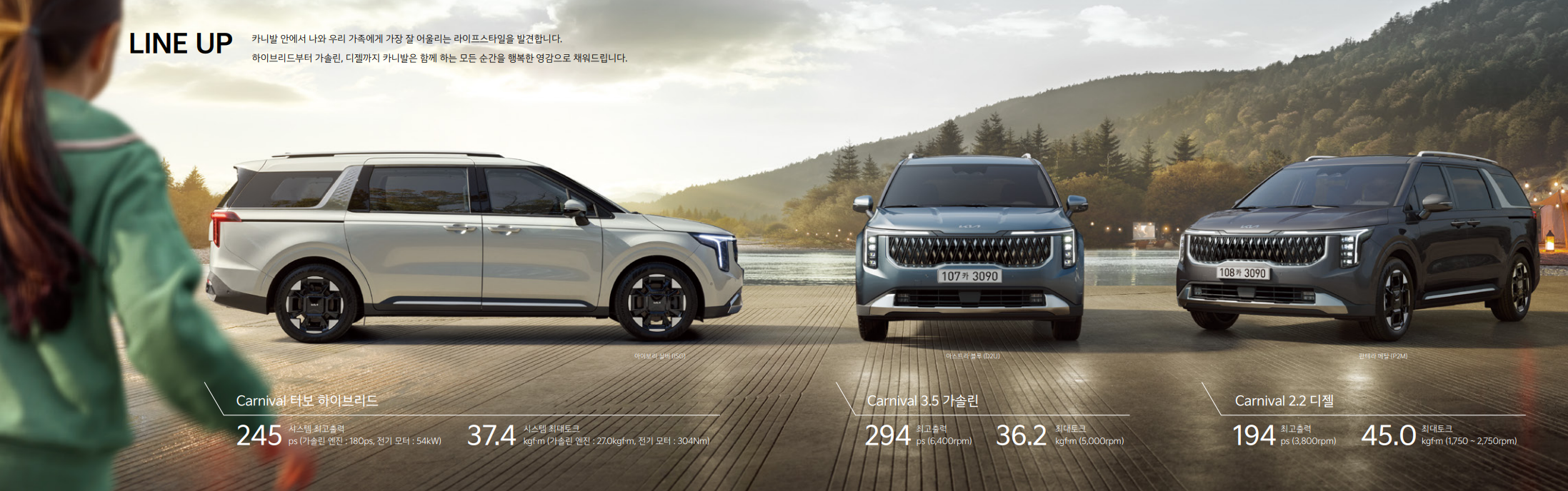| 카니발 시그니처 | 가솔린 3.5 | 7인승 | 5,000만원 ~ 5,300만원 | 프리미엄 옵션 포함, 최고급 사양 |