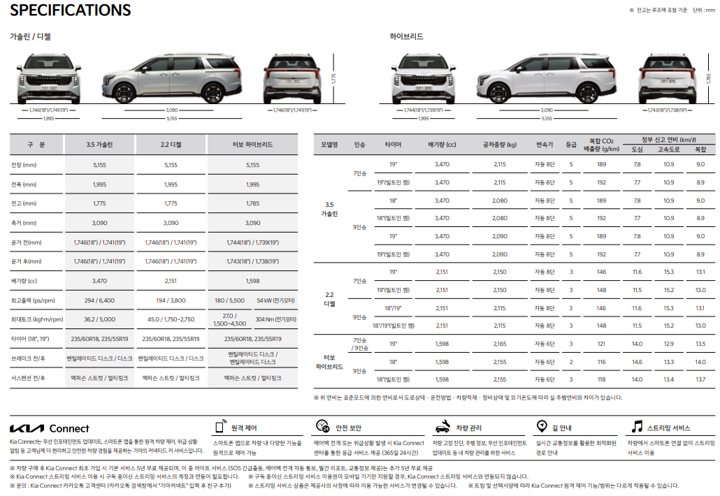 | 카니발 1.6 터보 하이브리드 | 15.5 km/L | 16.5 km/L | 14.0 km/L |