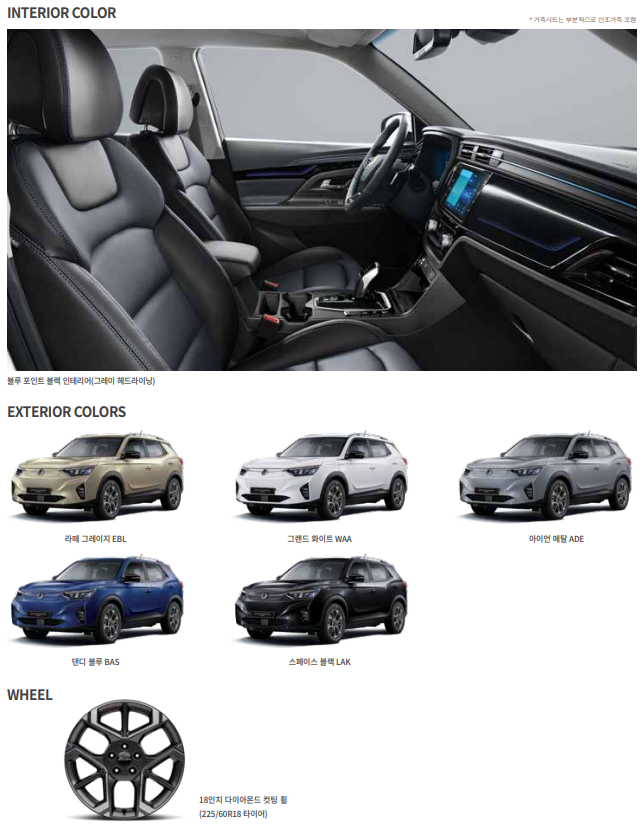 코란도 EV는 트림에 따라 다양한 옵션을 제공합니다.
