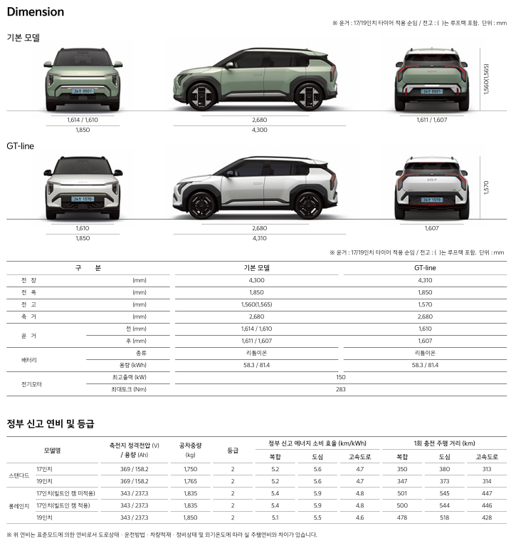 | 2025 EV3 주행 거리 | 약 400km (스탠다드), 약 550km (롱레인지) |