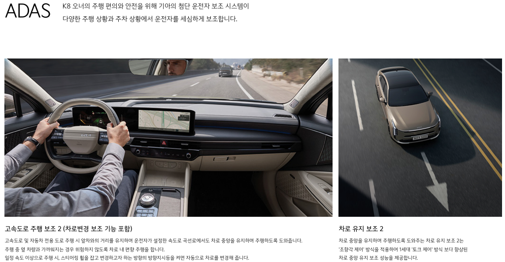 • 고속도로 주행 보조 2: 고속도로 주행 시 차로 유지, 차간 거리 유지, 자동 차선 변경 등을 지원하는 시스템입니다. 편안하고 안전한 고속도로 주행을 원한다면 추천합니다.