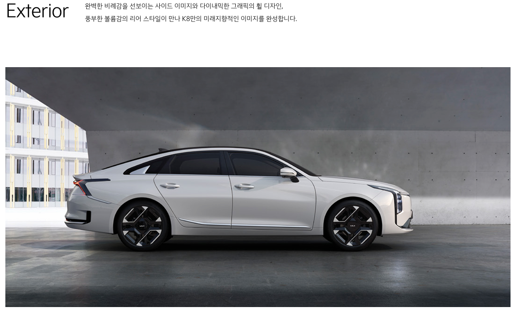 페이스리프트의 핵심은 바로 디자인 변화죠! 2025 K8 페이스리프트 모델은 기존 모델의 웅장하고 세련된 디자인 DNA를 계승하면서도, 더욱 날렵하고 스포티한 디자인 요소들을 가미하여 한층 진화된 모습을 선보일 예정입니다. 특히 전면부는 K8의 상징적인 디자인 요소인 '스타 클라우드 라이팅' 그릴이 더욱 웅장하고 입체적으로 변화하여 시선을 사로잡고, 새롭게 디자인된 헤드램프와의 조화를 통해 강렬한 존재감을 드러냅니다. 측면부는 역동적인 캐릭터 라인과 새롭게 디자인된 알로이 휠의 조합으로 스포티한 감성을 극대화했으며, 후면부는 좌우가 연결된 리어램프 디자인을 통해 미래지향적인 이미지를 완성했습니다. 전체적으로 스포티함과 고급스러움을 동시에 잡았다는 평가를 받고 있는 2025 K8 페이스리프트! 과연 실물로 마주했을 때 얼마나 더 멋질지 기대되지 않으신가요?