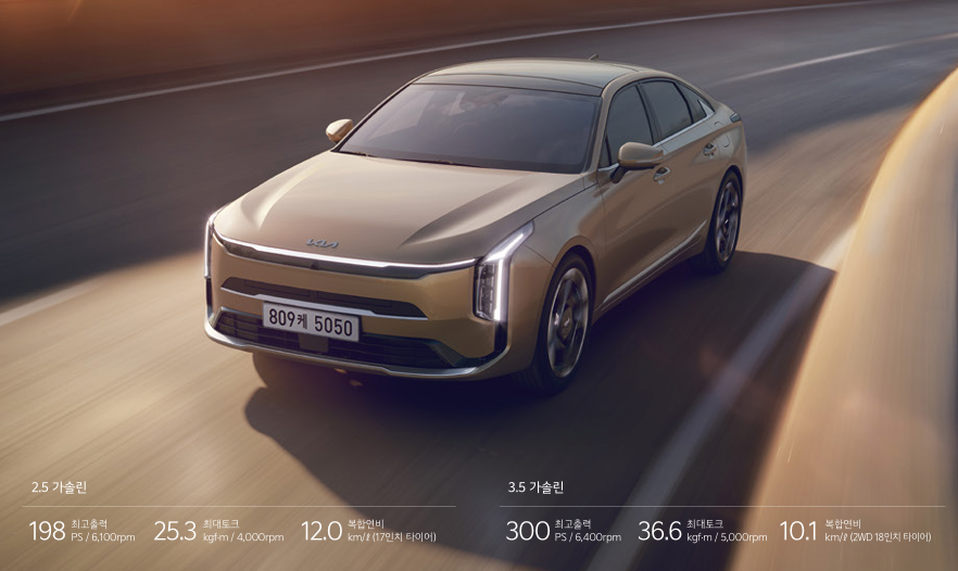 K8 페이스리프트 3.5 가솔린 300ps 36.6kg.m 10.6km/ℓ