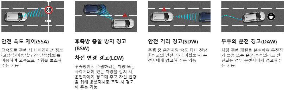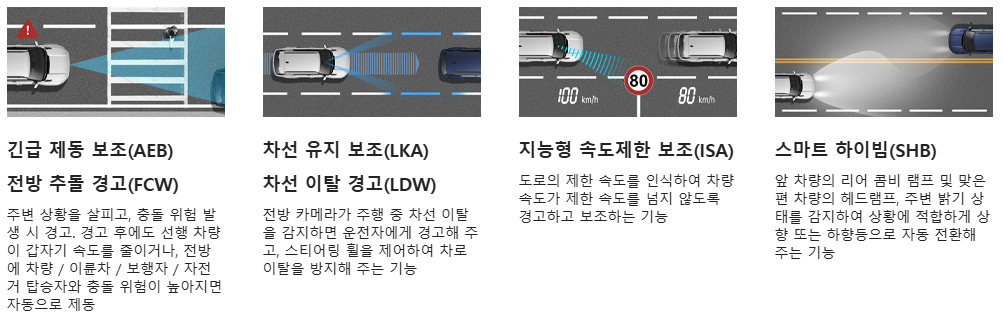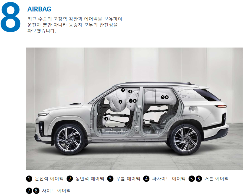 | 주요 안전 옵션 | ADAS, 9 에어백 | ADAS, 6 에어백 |