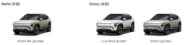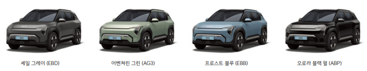 EV3는 스탠다드 모델과 롱레인지 모델로 나뉘며, 배터리 용량과 주행 거리가 다릅니다.