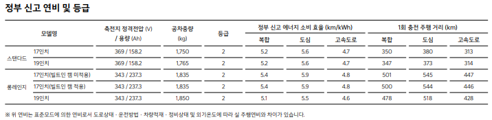- 주말 장거리 여행이 잦다면 롱레인지 모델 고려