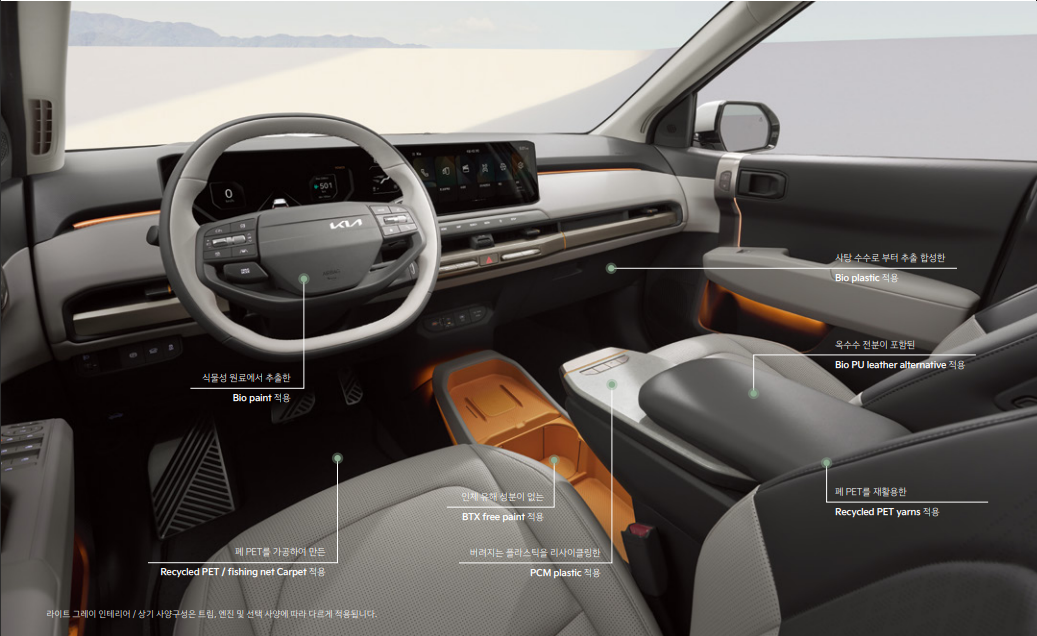 | EV3 어스 스탠다드 | 58kWh | 4,285만원 | 에어 + 18인치 휠, 인공가죽 시트, 히팅 스티어링 휠 |