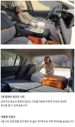 - V2L (Vehicle to Load): 차량의 배터리를 외부 전원으로 사용 가능
