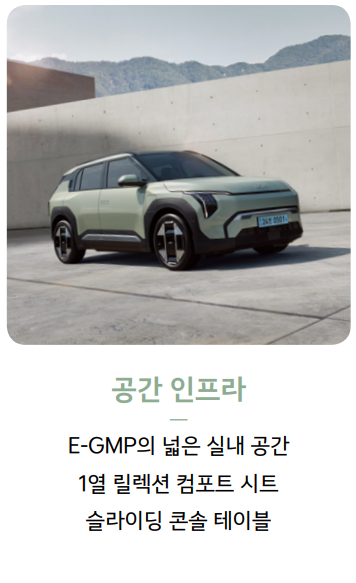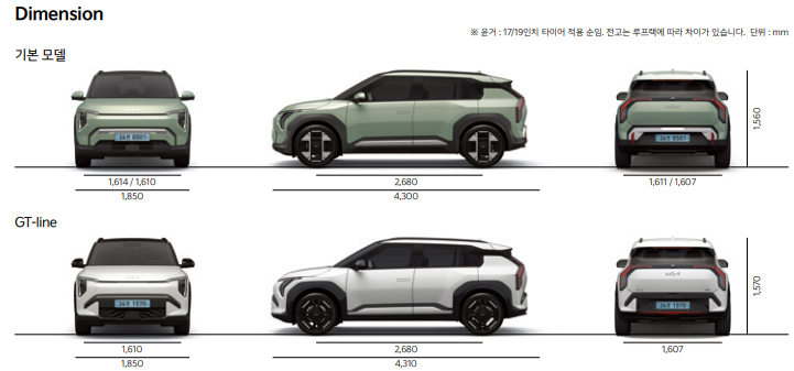 | EV3 에어 스탠다드 | 58kWh | 3,995만원 | 17인치 휠, LED 헤드램프, 10.25인치 클러스터 |