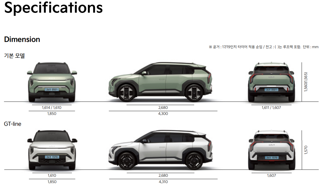 EV3의 제원을 살펴보면, 왜 이 차가 주목받고 있는지 단번에 알 수 있습니다.