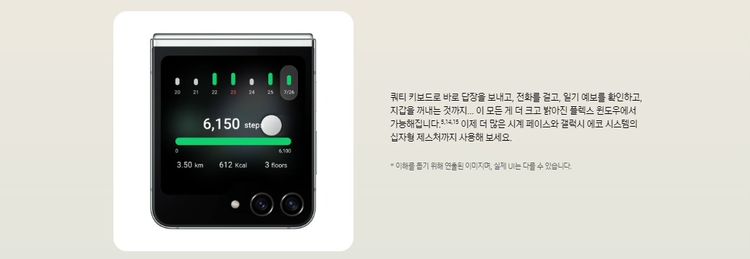 - 커버 디스플레이: Z 플립5의 대폭 확장된 커버 디스플레이는 사용성을 크게 향상시켰습니다. 더 많은 정보를 확인하고 다양한 작업을 수행할 수 있게 되었습니다.